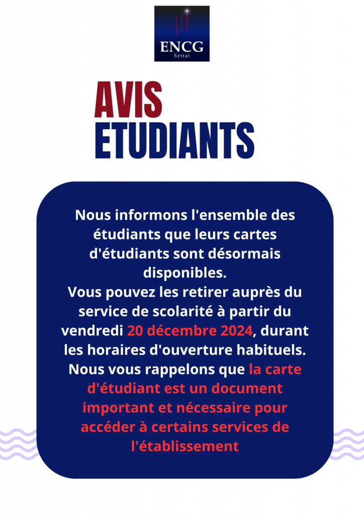 Avis aux étudiants: Cartes d’étudiants sont désormais disponibles.